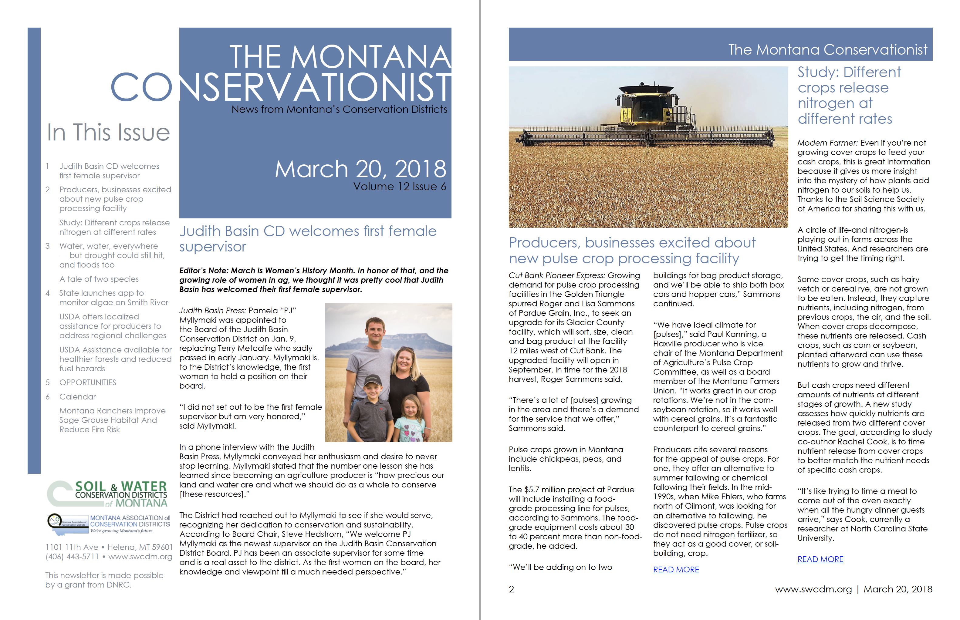 - Judith Basin CD recently welcomed their first female supervisor, part of a growing trend of women in agriculture leadership roles.